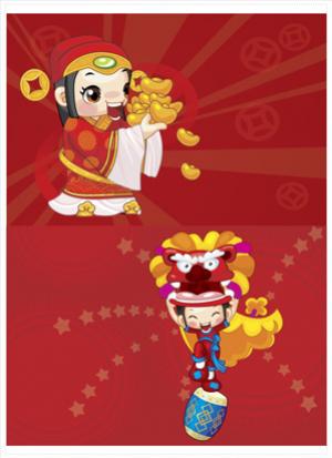 ภาพการ์ตูน เด็กๆ เกี่ยวกับเทศกาลวันตรุษจีน มีสีแดงเป็นเอกลักษณ์ เด็กผู้ชายถือเงินถือทอง มีท่าทางการเชิดสิงโต ไฟล์เวกเตอร์ ai ครับ