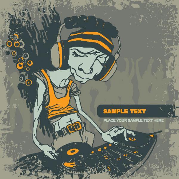 เวกเตอร์ดีเจซอมบี้ ที่กำลังเปิดแผ่นเพลงเป็น DJ ไฟล์เวกเตอร์แบบ eps สำหรับโปรแกรมกราฟิค Adobe Illustrator หรือ โปรแกรมด้านกราฟิคอื่นๆ