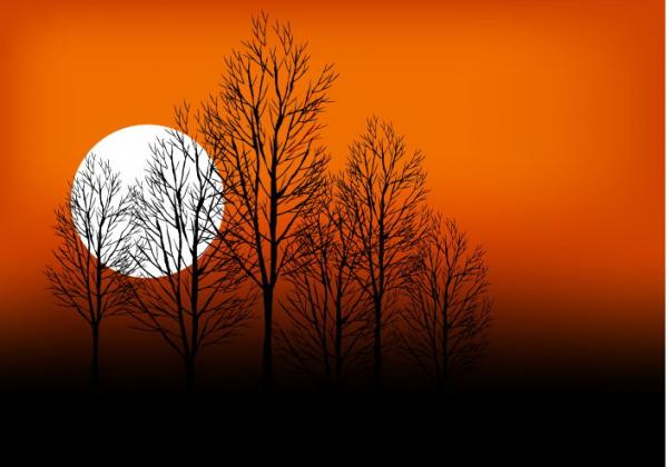 ภาพเวกเตอร์ ท้องฟ้าสีแดงตอนพระจันทร์กำลังข้ำมาและพระอาทิตย์กำลงตก ดูแล้ววังเวงๆ กับเงาต้นไม้สีดำ ภาพเวกเตอร์ โหลดฟรี สำหรับงานออกแบบกราฟฟิกดีไซน์ ไฟล์เวกเตอร์ eps