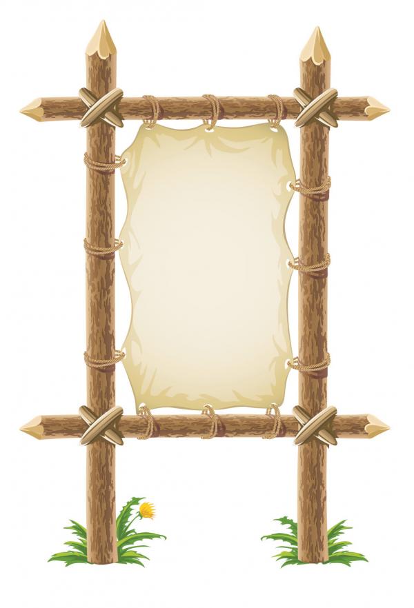 ภาพเวกเตอร์ป้ายไม้โบราณ เป็นการนำเอาเสาไม้มามัดติดกัน และดีไซน์โดยใช้หนังมาตรึงกับเสา ดังภาพตัวอย่าง ไฟล์เวกเตอร์ eps สำหรับโปรแกรมกราฟิกทั่วไป