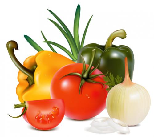 ผัก หลายชนิดจัดเรียง สวยงามแบบ 3D มีทั้งมะเขือเทศ หอมหัวใหญ่ แครอท ไฟล์ eps เวกเตอร์