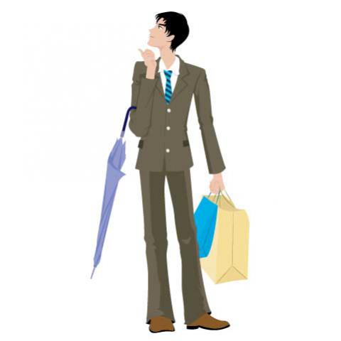 ผู้ชาย ยืน ถือร่ม ใส่สูทสีน้ำตาล ถือกระเป๋า กระดาษ ไฟล์ เวกเตอร์ eps