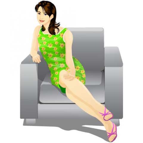 ผู้หญิงนั่งเก้าอี้โซฟา ใส่ชุดลายดอกสีเขียว ไฟล์เวกเตอร์ eps