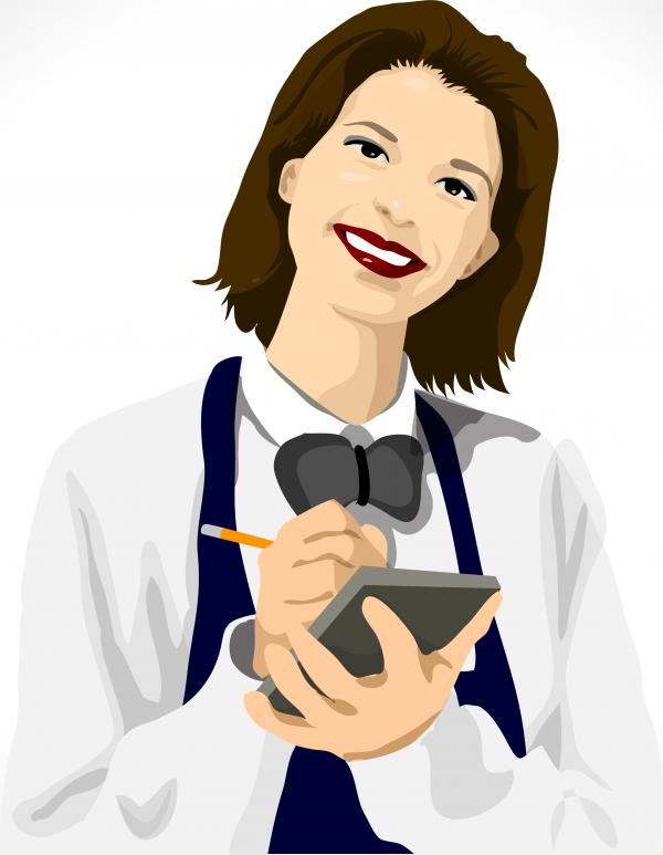 ภาพเวกเตอร์พนักงานรับรายการอาหาร หรือพนักงานอื่นๆ ตามจินตนาการของคุณเอง เธอเป็นผู้หญิงยืนถือสมุดเตรียมจดรายการอยู่ด้วยใบหน้าที่ยิ้มแย้มแจ่มใส ไฟล์เวกเตอร์ eps ดาวน์โหลดฟรี สำหรับงานด้านกราฟิก