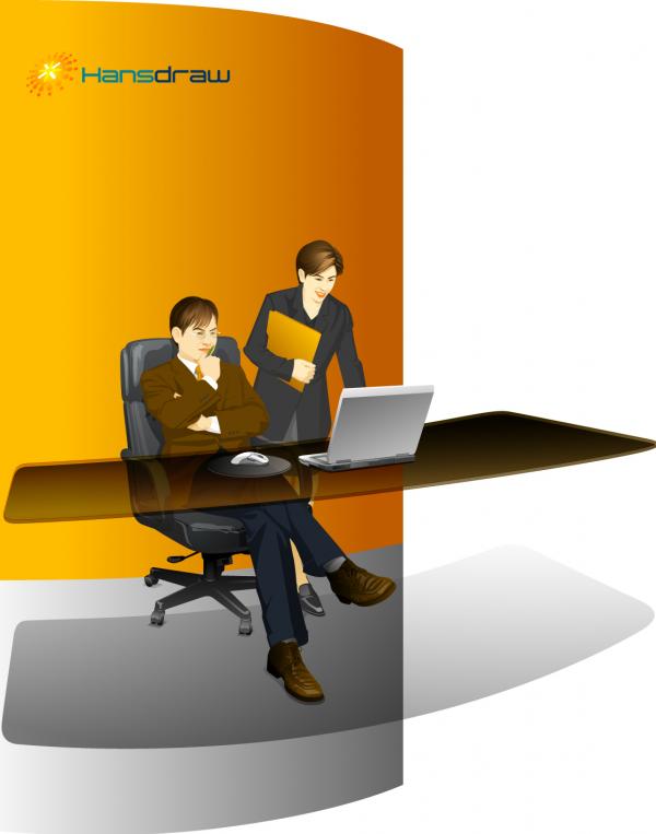 รูปเวกเตอร์พนักงานออฟฟิศ ดีไซน์ออกมาเป็นลักษณะหัวหน้าเป็นผู้ชาย นั่งเก้าอี้กำลังดูพนักงานหญิงนำเสอนงานให้ตรวจสอบ มีอุปกรณ์สำนักงานพร้อมเลยทีเดียว ดูแล้วเหมาะสมกับงานออกแบบที่สื่อถึง พนักงานออฟฟิศ ได้ดีมากครับ ไฟล์เวกเตอร์ Ai นะครับ ใช้โปรแกรม Adobe Illustrator เปิดเท่านั้น.