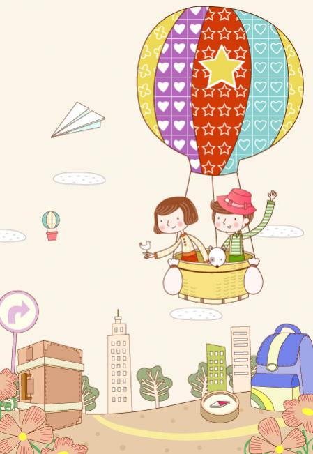 ภาพเวกเตอร์ภาพเขียนแบบเด็ก ภาพวาดเด็กเดินทางตามจินตนาการ โดยวาดเด็กอยู่บนบอลลูนสีสดใส
