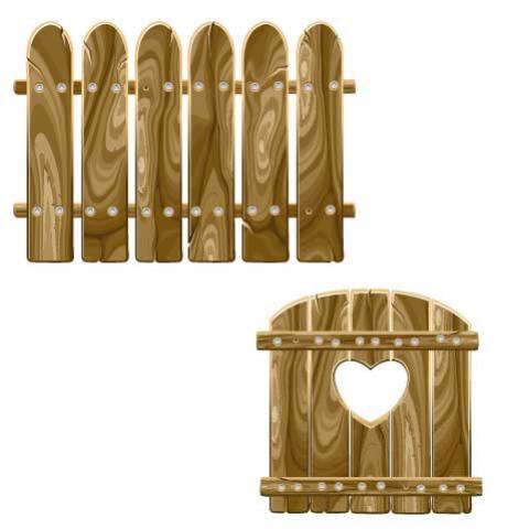รั่วไม้และประตูไม้ มีน็อตยึดไว้ ประตูไม้รูปหัวใจ ไฟล์ เวอกเตอร์ eps