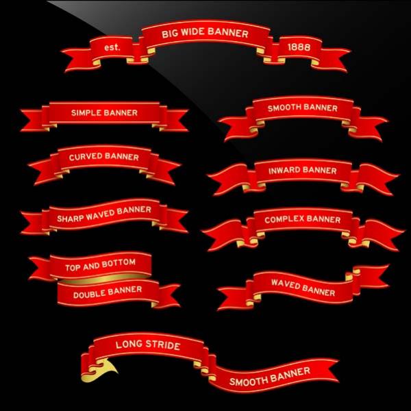 ริบบิ้น โบว์ ป้ายชื่อ ริบบิ้นหลากหลายรูปแบบ สีแดง เพื่อใช้ในงานมงคลต่างๆ ไฟล์ eps เวกเตอร์