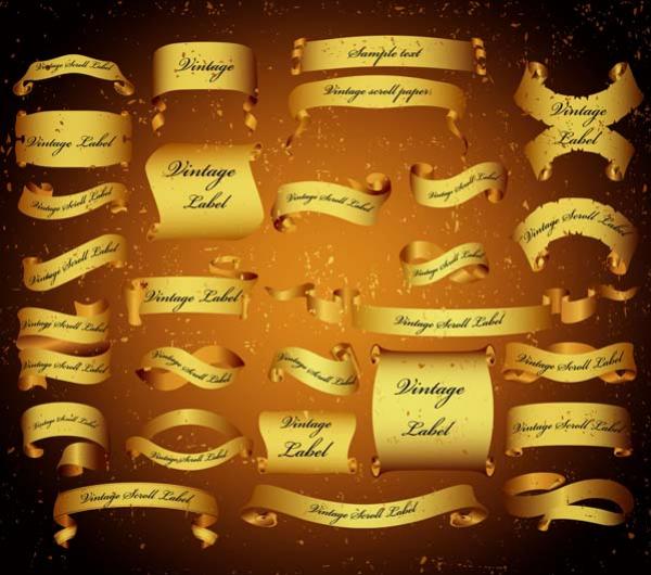 ริบบิ้น สีทอง หรูหรา สวยงาม หลากหลายสไตล์ ไฟล์ eps เวกเตอร์