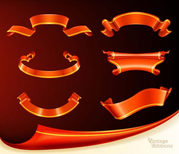 ริบบิ้น สไตล์ แดงทอง สีมงคล มี 4 แบบ ไฟล์ eps เวกเตอร์