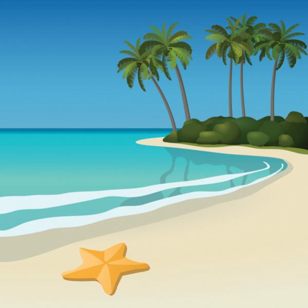 วิว ชายทะเล สวยๆ มีหาดทราย และทะเล ต้นมะพร้าว เกาะ ไฟล์ eps เวกเตอร์
