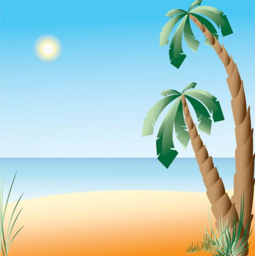 วิว เกาะกลางทะเล มีต้นปลาม และพระอาทิตย์ และท้องทะเลย สวยมาก ไฟล์ eps เวกเตอร์