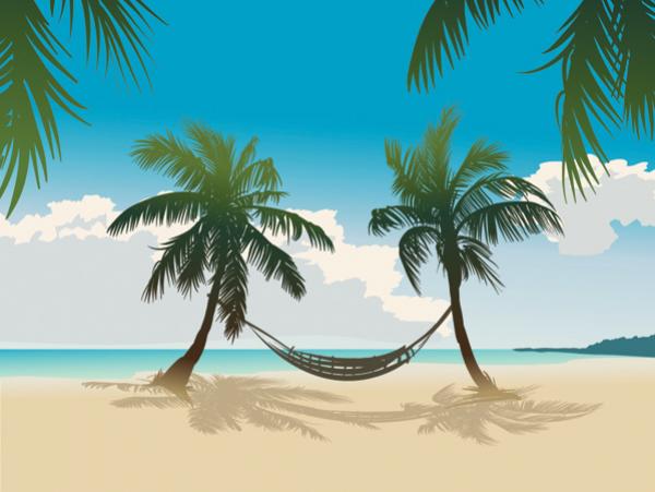 วิว ต้นมะพร้าวกับการผักผ่อนกับเปรนอน แสนสนุกกับบรรยากาศสวยๆ ไฟล์ eps เวกเตอร์