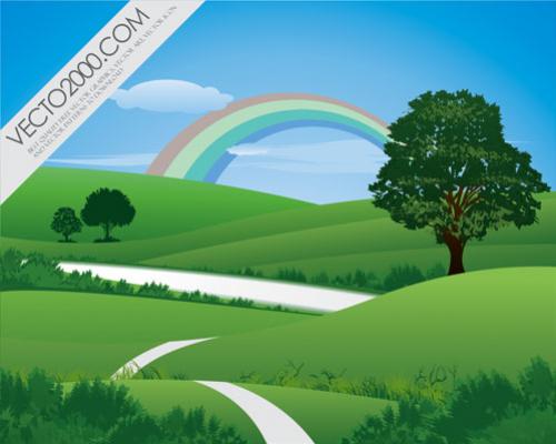 ไฟล์เวกเตอร์สนามหญ้าแบบกว้างๆ เป็นภาพแบบวิวกว้างเห็นภูเขาที่เต็มไปด้วยสนามหญ้าสีเขียว มีสายรุ้งโค้งผ่านท้องฟ้า ดูแล้วสบายตาครับ ไฟล์เวกเตอร์แบบ ai สำหรับโปรแกรม Adobe Illustrator เท่านั้นนะครับ