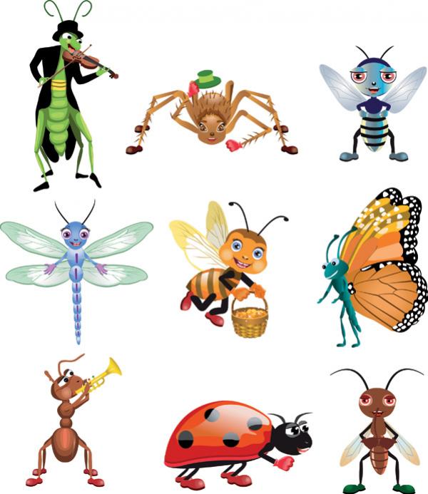 รวม รูปสัตว์การ์ตูน และ แมลง น่ารักๆ ของฤดูใบ้ไม้พลิ เช่น แมลงปอ ผึ้ง เต่าทอง และอื่นๆ ไฟล์ eps เวกเตอร์