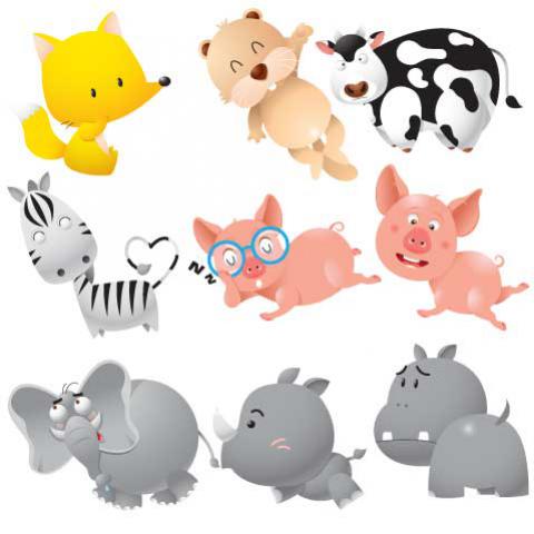 เวกเตอร์ การ์ตูน วัว หมู ม้าลาย ช้าง ฮิปโป สุนัขจิ้งจอก