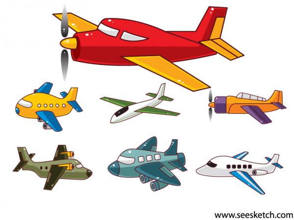ภาพเวกเตอร์เครื่องบินแบบการ์ตูนน่ารักๆ สีสันสดใสหลากหลายดีไซน์ รวม 7 แบบครับ ทั้งเครื่องบินโดยสาร และเครื่องบินขนส่ง เครื่องบินส่วนตัว ไฟล์เวกเตอร์ AI สำหรับโปรแกรม Adobe Illustrator นะครับ ดาวน์โหลดฟรี