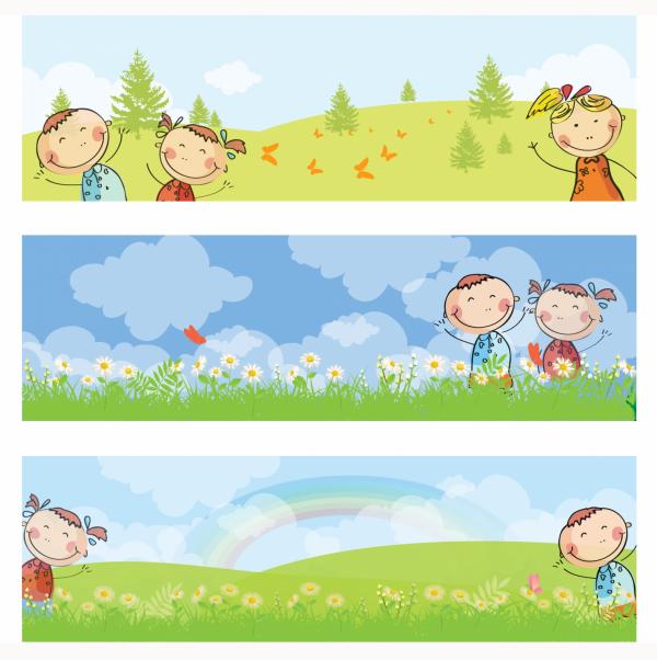 ภาพเวกเตอร์แบ็คกราวเด็กๆ เป็นภาพดีไซน์เด็กแบบการ์ตูน ที่กำลังวิ่งเล่นสนามหญ้า เห็นท้องฟ้าต้นไม้แล้ต้นหญ้า สวยงามมากครับไฟล์เวกเตอร์แบบ eps สำหรับโปรแกรมกราฟิกทั่วไป