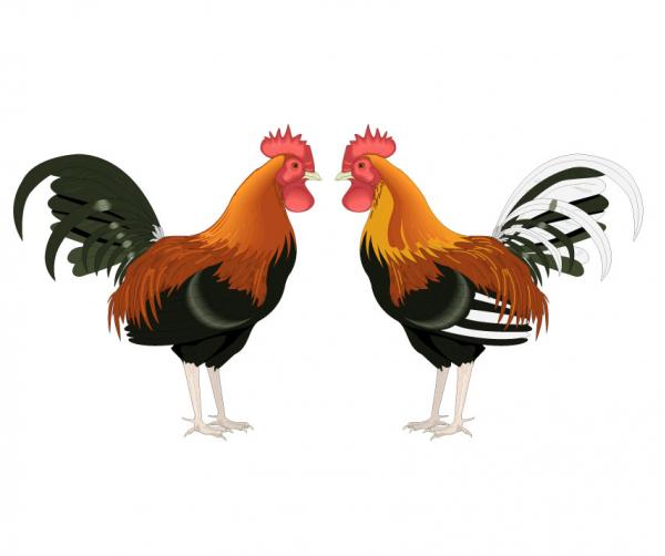 ภาพเวกเตอร์ไก่ชน 2 ตัวหันหน้าเข้าหากัน เป็นไฟล์เวกเตอร์สำหรับงานออกแบบ งานกราฟฟิกดีไซน์ ไก่ชนภาพด้านข้างแบบเต็มตัว ไฟล์เวกเตอร์สามารถนำไปขยายให้ใหญ่ขนาดใดก็ได้โดยไม่เสียรายละเอียดของภาพเลย ไฟล์เวกเตอร์ eps